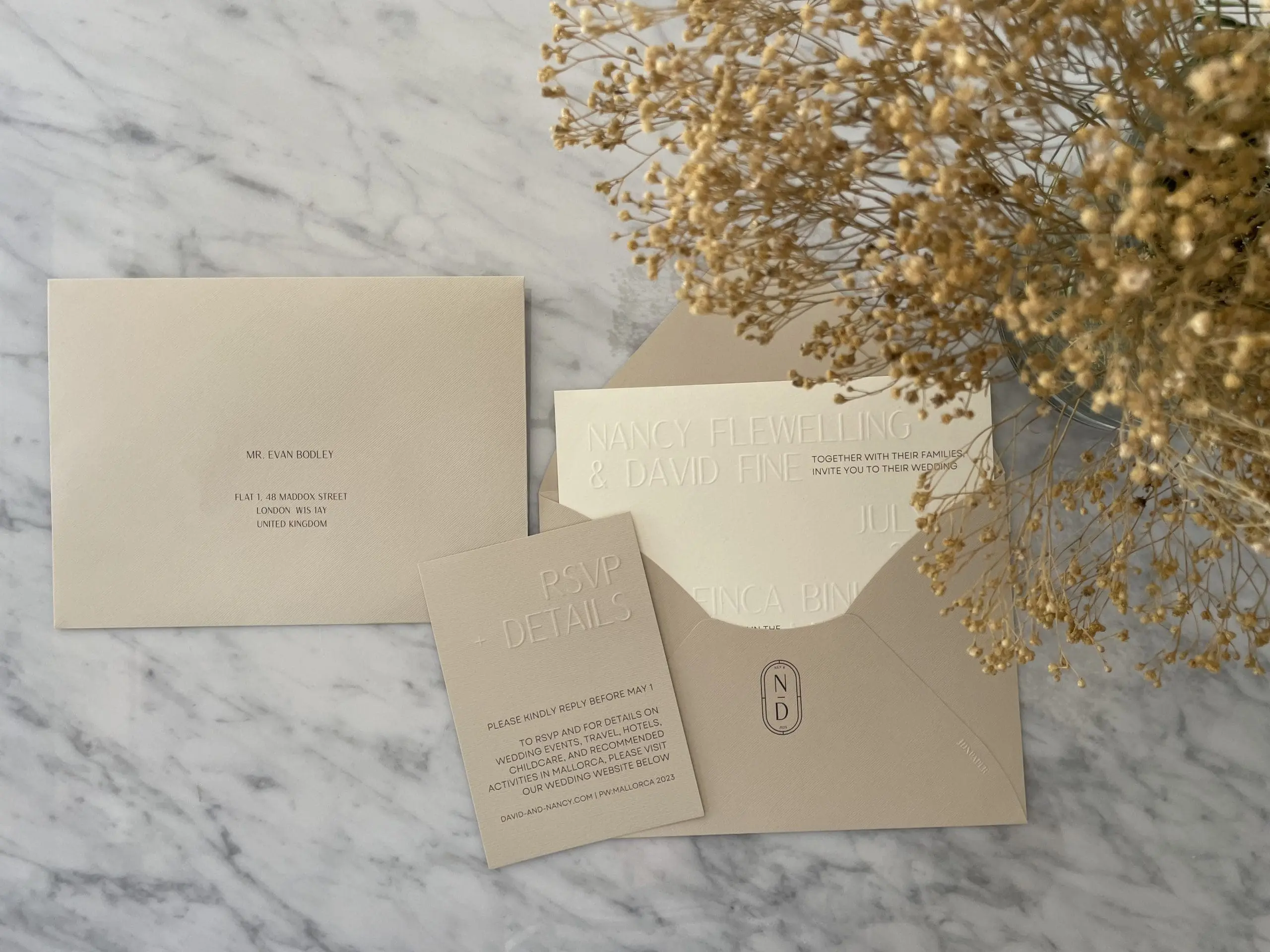 Nos ayuda mucho tener un moodboard o guía visual del evento. A partir de eso, proponemos estilos, tipos de papeles, técnicas de impresión y complementos que creemos que pueden encajar, y las parejas eligen en base a nuestras propuestas. Es un proceso en el que se implican y disfrutan mucho.